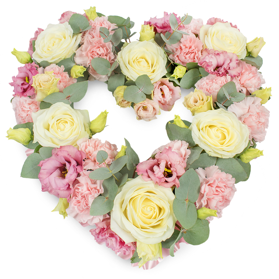 Expertly arranged by our skilled florists, this open heart tribute offers a thoughtful focal piece for funerals, memorials or celebration of life services. Approximate dimensions are 43cm (17") in height and 42cm (16.5") in width, making it ideal for display near the casket, at the altar or alongside framed photographs.